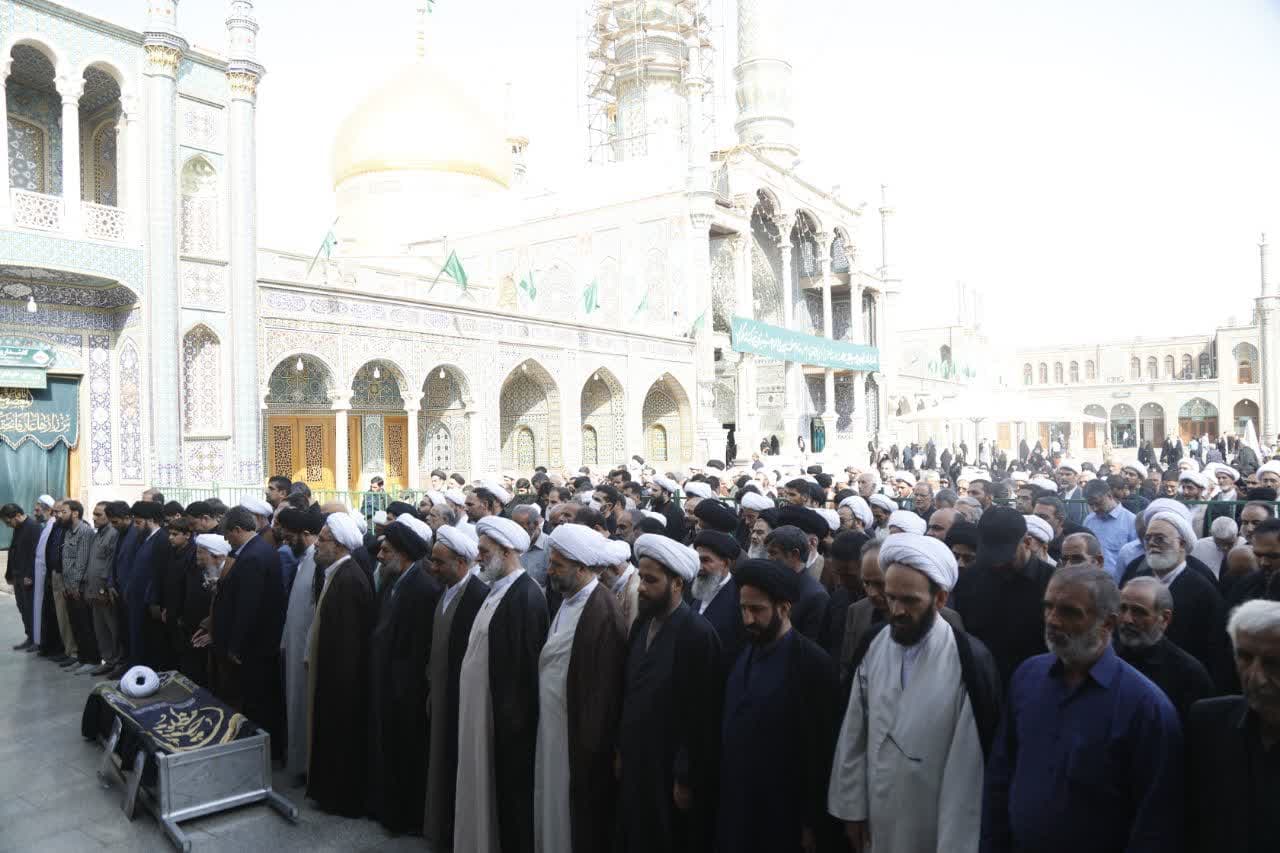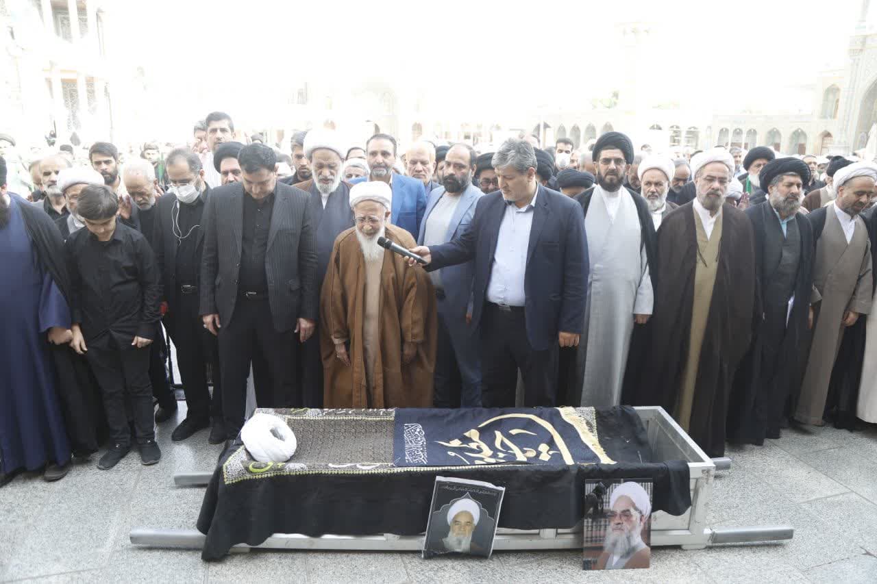 حضرت آیت الله العظمی جوادی آملی بر پیکر این عالم ربانی نماز اقامه کردند.